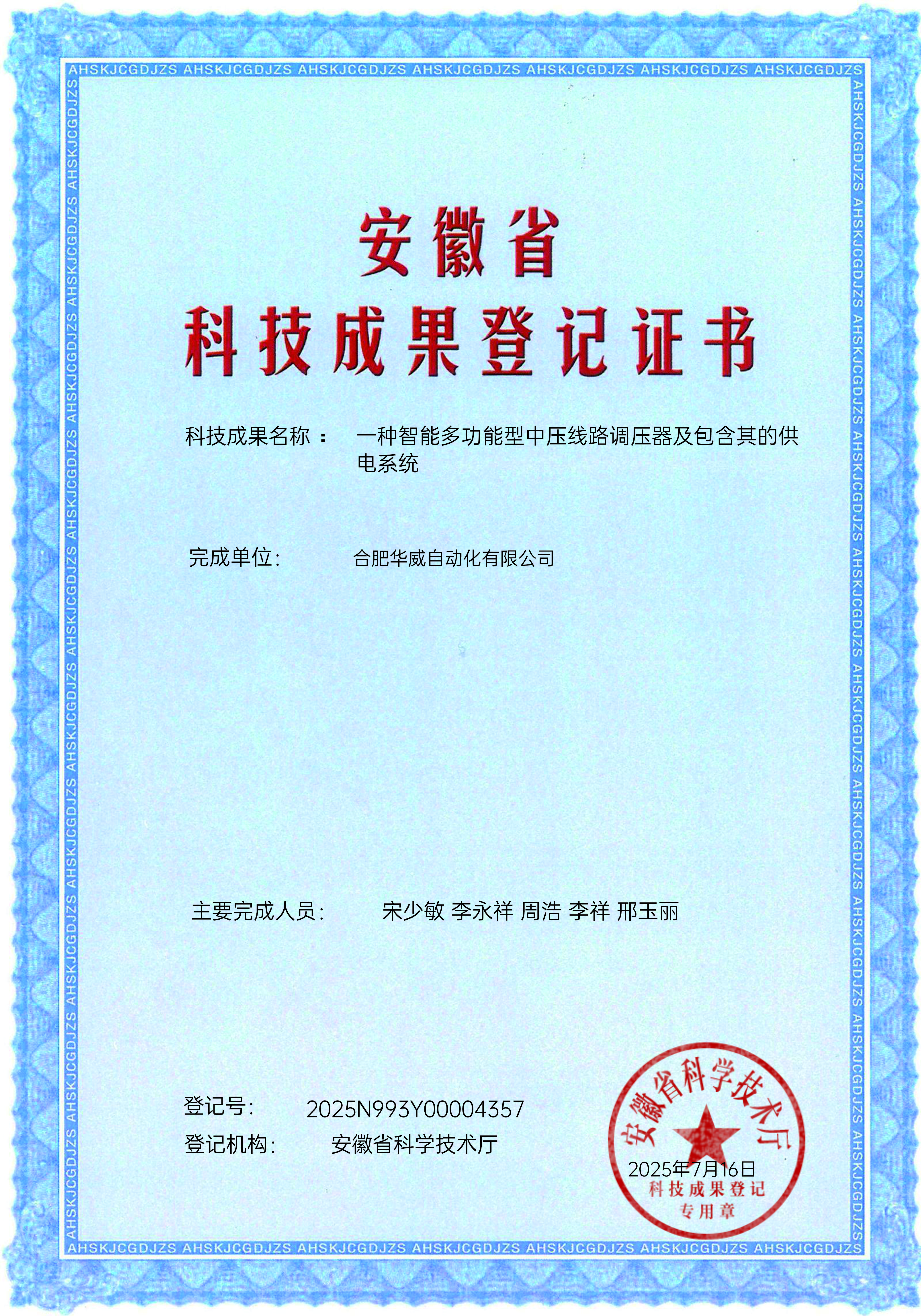 安徽省科技成果登記證書(shū)